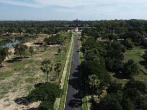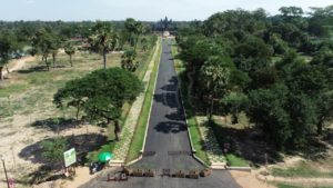 ទិដ្ឋភាព​ផ្លូវ​មុខ​ប្រាសាទអង្គរវត្ត ក្រោយ​ស្ថាបនា​រួច