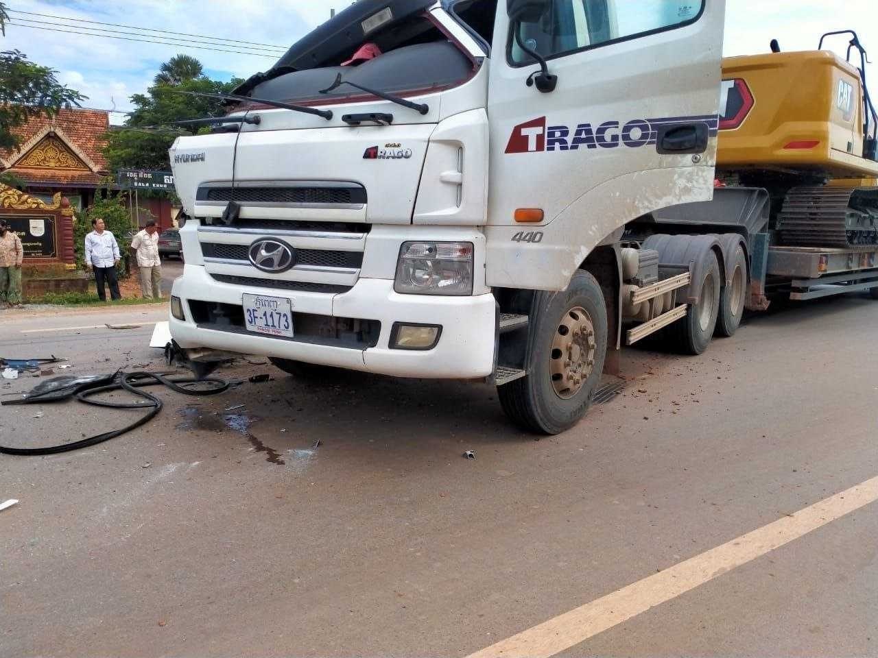 ចំណែករថយន្តទី៣ ម៉ាក B1 ក្បាលពណ៌ស ស្លាកលេខភ្នំពេញ 3F-1173 ដឹកអេស្កាវទ័រ ទិសដៅពីត្បូងទៅជើង អ្នកបើកបរឈ្មោះ តុង ផាន់ណា ភេទប្រុស អាយុ២៣ឆ្នាំ ទីលំនៅភូមិតាប្រុក ឃុំឈូកខ្សាច់ ស្រុកបារាយ ខេត្តកំពង់ធំ (គ្មានរបួស) រថយន្តខូចខាតផ្នែកខាងមុខ(ធ្ងន់)។ ចំណែករថយន្តមួយគ្រឿងទៀតមិនស្គាល់ម៉ាកដឹកអេស្កាវទ័រ អ្នកបើកមិនស្គាល់អត្តសញ្ញាណ មានទិសដៅពីត្បូងទៅជើងបានបើកបន្តដំណើរទៅមុខ តែត្រូវសមត្ថកិច្ចឃាត់បាន។