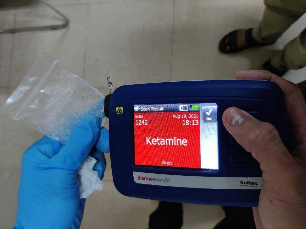 មន្ទីរប្រឆាំងគ្រឿងញៀន(ក១០) បានឲ្យដឹងថា កាលពីពេលថ្មីៗនេះ ដោយមានកិច្ចសហការជាមួយគយ និងរដ្ឋាករប្រចាំឃ្លាំងទំនិញ (CARGO) នៃអាកាសយានដ្ឋានអន្តរជាតិភ្នំពេញ សមត្ថកិច្ចបានធ្វើការត្រួតពិនិត្យកញ្ចប់បញ្ញើមិនប្រក្រតី ដែលផ្ញើពីទីក្រុង JOHANNESBURG ប្រទេសអាហ្វ្រិកខាងត្បូង ចូលមកកម្ពុជា តាមរយ:ក្រុមហ៊ុន DHL ហើយបានរកឃើញមានបង្កប់លាក់សារធាតុញៀន(រាវ)ប្រភេទ កេតាមីន( KETAMINE ) ក្នុងដបជរ័ពណ៌ស ម៉ាក ALOE GEL ចំនួន ៦០ដប មានទម្ងន់ ១០គីឡូក្រាម(គិតទាំងសំបក)។