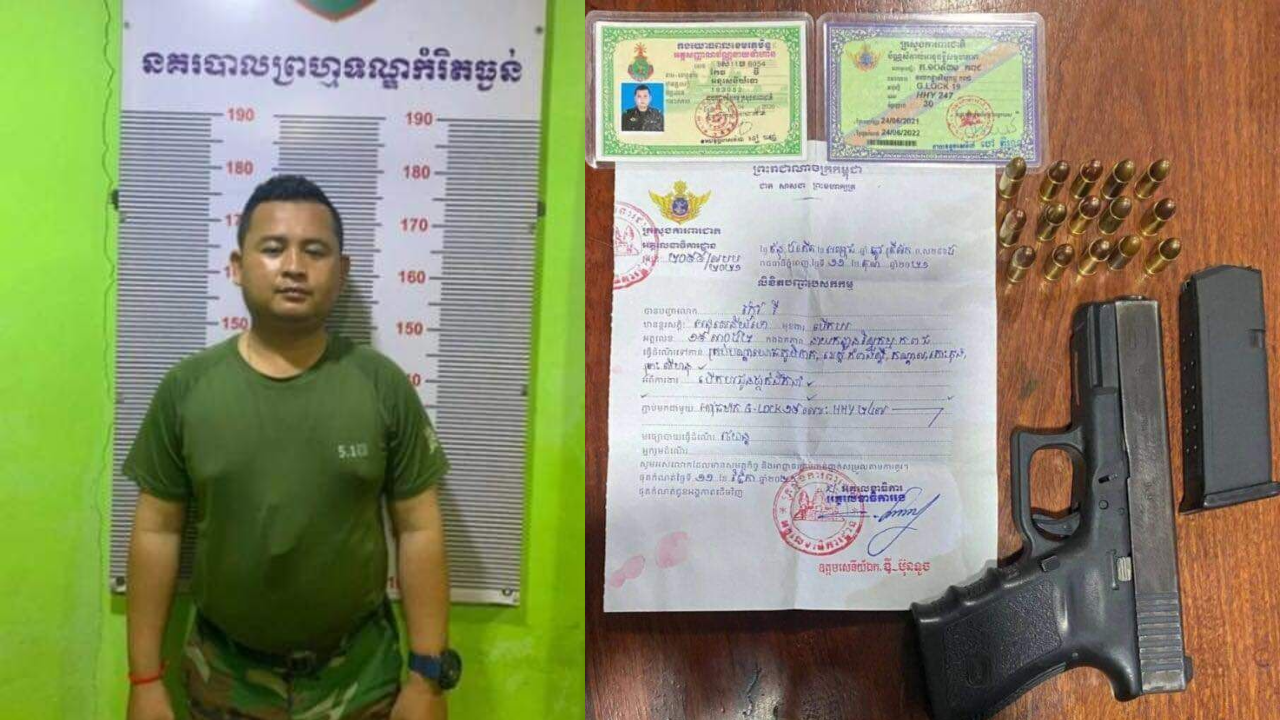 ចាប់មន្រ្តីយោធាហៅស្រីស្នេហ៍ទៅដេកមិនបានដកកាំភ្លើងបាញ់គំរាមកណ្ដាលក្រុងសៀមរាប
