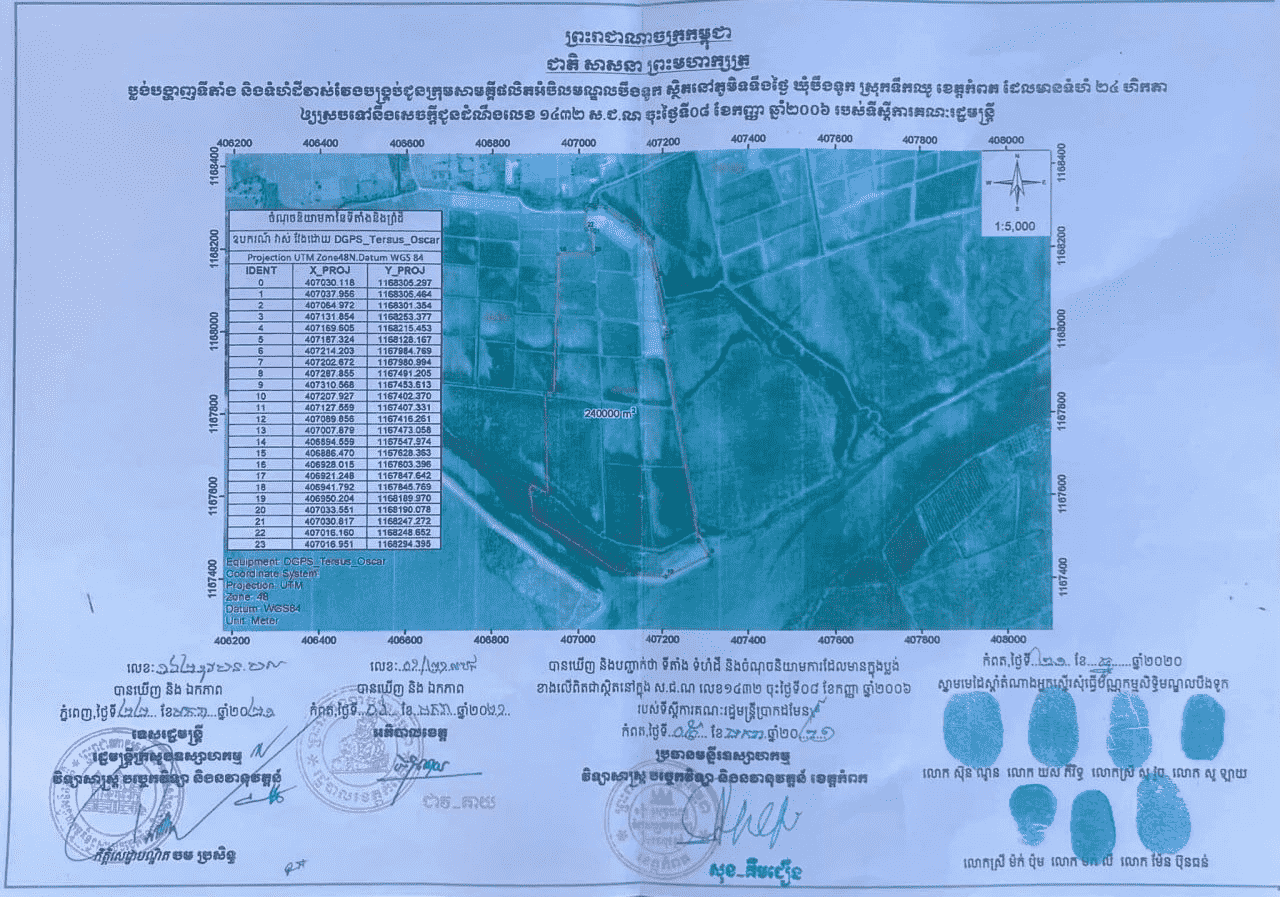 ឯកឧត្តមទេសរដ្ឋមន្ត្រី ចម ប្រសិទ្ធ ថ្លែងទៀតថា ដីស្រែអំបិលរបស់ក្រុមសាមគ្គីផលិតអំបិលទាំង៦ក្រុម ទំហំ២៤ហិកតានេះ ត្រូវបានរាជរដ្ឋាភិបាល ផ្តល់សិទ្ធិកាន់កាប់ស្របច្បាប់តាមរយៈលិខិតលេខ១៤៣២ «សជណ» ចុះថ្ងៃទី៨ ខែកញ្ញា ឆ្នាំ២០០៦ របស់ទីស្ដីការគណៈរដ្ឋមន្ត្រី ។