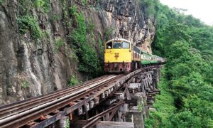 ផ្លូវដែកដែលតភ្ជាប់ប្រទេសថៃទៅភូមាមួយនេះ ត្រូវបានសាងសង់ឡើងដោយកម្លាំងពលកម្ម កំឡុងការកាន់កាប់របស់ជប៉ុនក្នុងសង្គ្រាមលោកលើកទី ២ ហើយត្រូវបានគេស្គាល់ថាជា “ផ្លូវដែកមរណៈ” ពីព្រោះអ្នកទោសសង្គ្រាមសម្ព័ន្ធមិត្តជាង ១២០០០ នាក់ និងកម្មករបង្ខំរាប់ម៉ឺននាក់បានស្លាប់ ក្នុងអំឡុងពេលសាងសង់។
