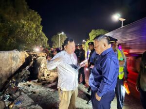 កំពង់ធំ៖ រថយន្ដក្រុងដឹកអ្នកដំណើរពេលយប់មួយគ្រឿង ផ្ទុកមនុស្ស៣៧នាក់ បានក្រឡាប់ធ្លាក់ចូលទឹកនៅវេលាម៉ោង៣ទាបភ្លឺ ថ្ងៃទី២០ ខែវិច្ឆិកា ឆ្នាំ២០២៥ ចំណុចស្ពានអូរប្រសាទ ភូមិជ័យជំនះ ឃុំកកោះ ស្រុកសន្ទុក ខេត្តកំពង់ធំ។