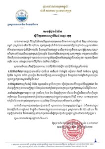 យោងលើការព្យាករដូចបានជម្រាបជូនខាងលើ សូមសាធារណជនមេត្តាប្រុងប្រយ័ត្នខ្ពស់ ជាពិសេសបងប្អូន ដែលធ្វើដំណើរតាមផ្លូវគោក និងផ្លូវទឹក ពិសេសបងប្អូននេសាទតាមសមុទ្រ។ ក្រសួងធនធានទឹក និងឧតុនិយម នឹងបន្តធ្វើការតាមដាន និងវិភាគអំពីស្ថានភាពធាតុអាកាសដើម្បីជម្រាបជូនជាបន្តបន្ទាប់ ក្នុងករណីមានការប្រែប្រួល៕