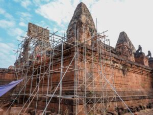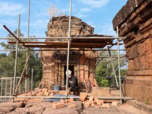 អាជ្ញាធរជាតិអប្សរា ជួសជុលប៉មឥដ្ឋលេខ១០ និងកម្រាលថ្មបាយក្រៀម នៅជ្រុងនិរតីនៃរួតទី១ ប្រាសាទប្រែរូប