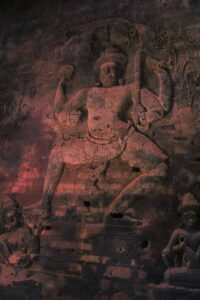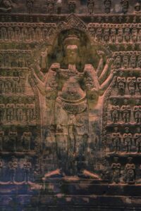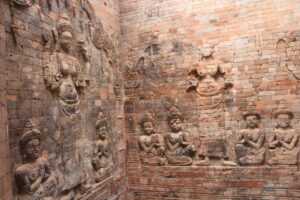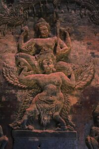 ចម្លាក់ទេវកថាព្រះនារាយណ៍ដ៏ល្អឥតខ្ទោះ នៅលើជញ្ជាំងឥដ្ឋប្រាសាទក្រវ៉ាន់