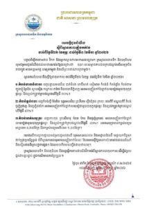 ខាងក្រោមនេះជាសេចក្តីជូនដំណឹងរបស់ក្រសួងធនធានទឹក និងឧតុនិយម៖