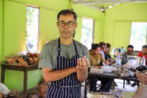 លោក សុជាធី បញ្ជាក់ថា ការផ្ទេរចំណេះដឹងនេះចាប់ផ្ដើមពីការអនុវត្តចាប់ពីវត្ថុងាយៗសាមញ្ញ ដូចជា សូនពែង កែវ ចានធំ-តូច ក្អម ថូ សូនរូប បច្ចេកទេសផ្សំស្រទាប់រលោងសម្រាប់លម្អ និងធានាបាននូវគុណភាពខ្ពស់។ លោកបន្ដទៀតថា ការបណ្តុះគំនិតពួកគាត់ឱ្យយល់អំពីលក្ខណៈនៃការបង្កើតថ្មី ហើយតម្រង់ទិសឱ្យពួកគាត់ស្វែងយល់ពីតម្រូវការទីផ្សារ ដើម្បីក្លាយជាសហគមន៍ស្មូនកុលាលភាជន៍នាពេលអនាគត។