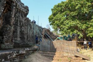អាជ្ញាធរជាតិអប្សរា កំពុងជួសជុលជញ្ជាំងថ្មបាយក្រៀម ផ្នែកខាងត្បូង ឆៀងខាងលិចរបស់កំពែងក្រុងអង្គរធំ