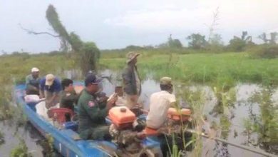 សន្តិសុខបង្ក្រាបបទល្មើសនេសាទ ដកហូតស្បៃម៉ុងជិត២០០០ម៉ែត្រនៅស្រុកសង្កែ