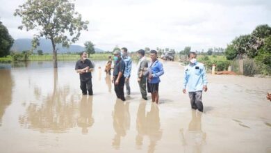 អភិបាលខេត្តកំពង់ស្ពឺ ចុះពិនិត្យស្ថានភាពទឹកនៅអាងទំនប់ និងតំបន់ប្រឈមនឹងទឹកជំនន់