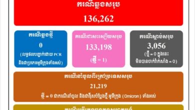 ថ្ងៃនេះ! កម្ពុជា អត់មានករណីឆ្លងកូវីដថ្មី ក៏គ្មានអ្នកជាសះស្បើយដែរ!